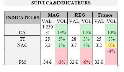 MAGASIN =CA +44,72% Trafic +8% TT 44,67% /+50 NAC 3,64/+11 PM 33,2€ /-11
